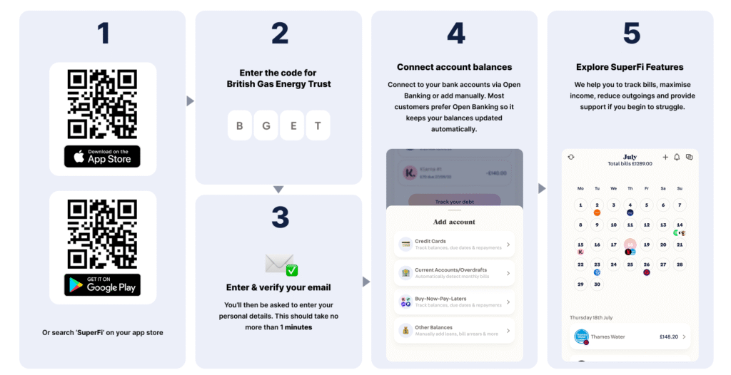 SuperFi brings together all your bills and payments in one place, helping you manage money confidently and reduce the risk of falling back into debt.